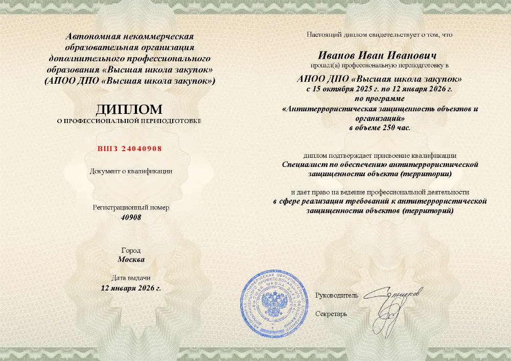 Это полноценная образовательная программа для получения дополнительной квалификации и освоения новой профессии. Для поступления также требуется высшее или среднее профессиональное образование (СПО). Итоговым документом является полноценный диплом о профессиональной переподготовке, который ценится на рынке труда. Программы являются наиболее объемными и начинаются от 250 академических часов, что обеспечивает глубокое погружение в специальность.