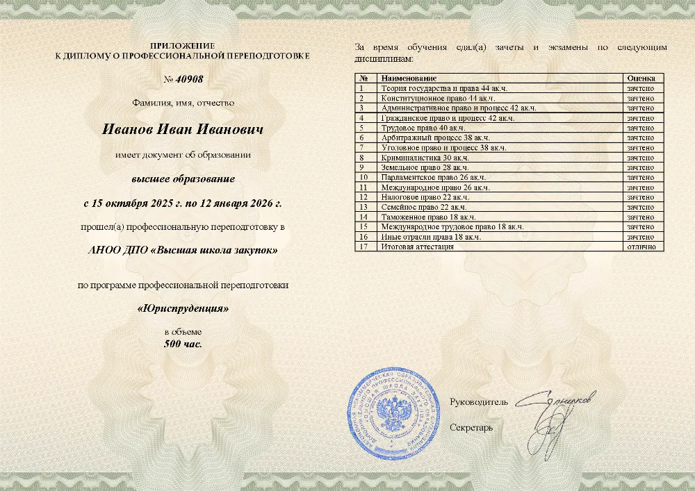 Профессиональная переподготовка, 500 академических часов, 16 модулей: теория государства и права, конституционное, гражданское, уголовное и трудовое право, арбитражный и административный процесс, налоговое, земельное, таможенное и международное право. Онлайн-обучение в в Волгограде с итоговой аттестацией.