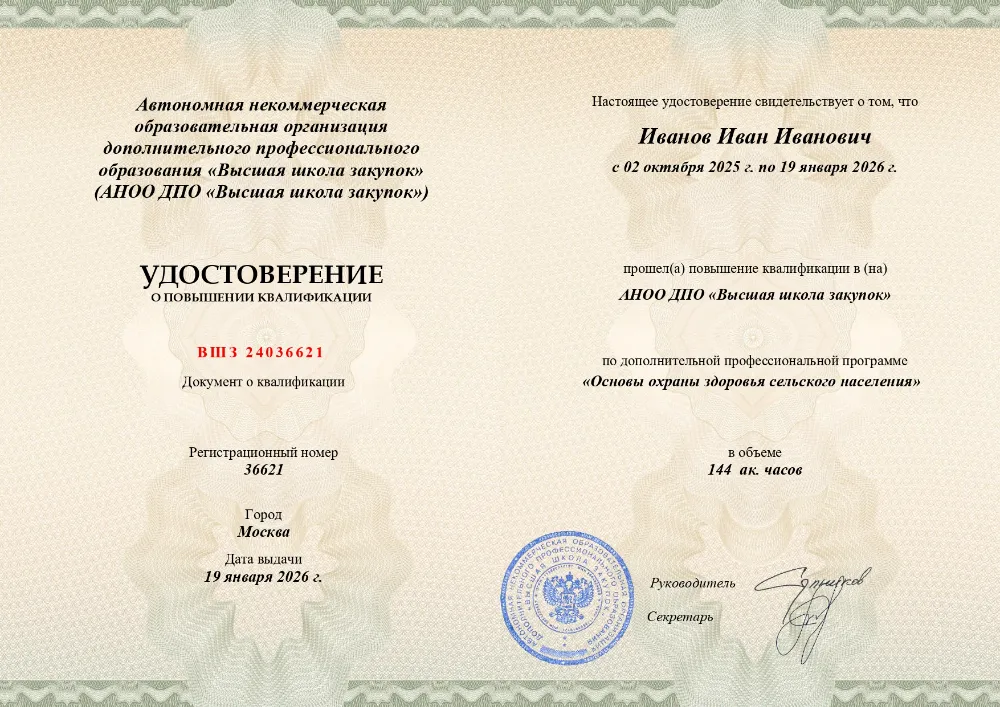 Курс повышения квалификации (144 часа) по основам охраны здоровья в сельской местности. Изучите правовые, организационные и экономические аспекты сельского здравоохранения, санитарно-эпидемиологическое обеспечение и управление качеством медицинской помощи. Онлайн-обучение в в Волгограде с итоговой аттестацией.