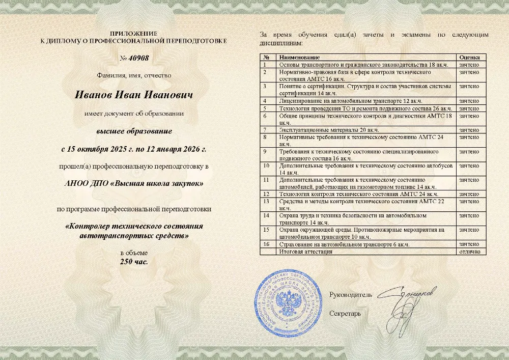 Профессиональная переподготовка, 250 академических часов, 7 модуля: нормативно-правовые основы и технологии контроля, охрана труда, экологии и требования к техническому состоянию транспортных средств. Онлайн-обучение в в Волгограде с итоговой аттестацией.